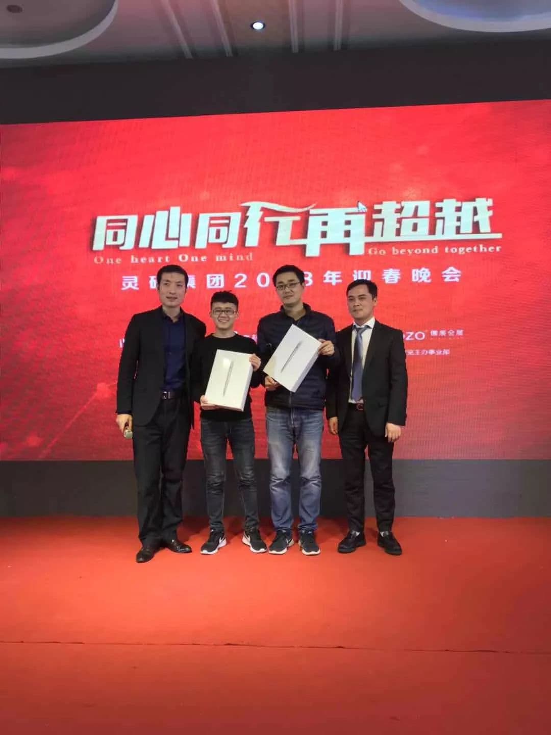 最激動人心的抽獎環節,將晚會推向高潮,本次晚會的一等獎是兩臺蘋果電腦,中獎者為靈碩工程部與市場部的小伙伴,幸運者依次登臺領獎,但幸運屬于所有辛勤的靈碩人。