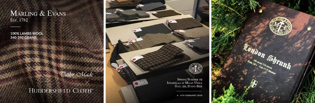 Huddersfield Cloth面料除了羊毛面料,還提供羊絨、花呢、斜紋織物和夏季用亞麻和棉等纖維制成的紡織品,旗下有品牌:Marling&Evans,同樣為人折服。此次兩款面料均有在展會現場展示。