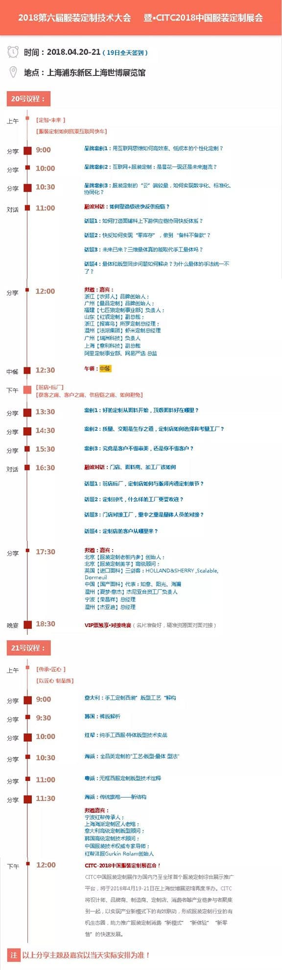 第六屆中國服裝定制技術千人峰會暨CITC2018中國服裝定制展會特別邀請行業標桿企業、海內外服裝精英、大咖專家們一起講真話!拋干貨!辨方向!用成功案例給大家做分享一場定制服裝人的頭···